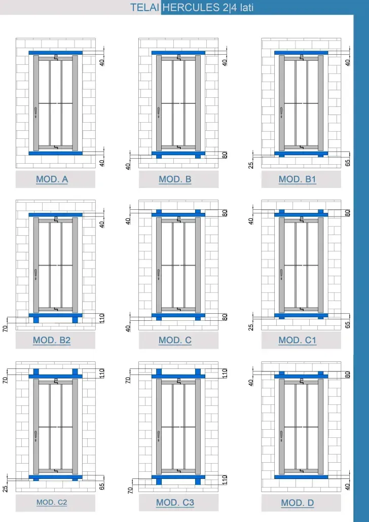 TELAIO telescopico ai 4 lati, realizzato con profili verticali in acciaio zincato 40x30mm disponibile in 18 varianti per permettere di adattarsi al meglio ad ogni esigenza costruttiva.