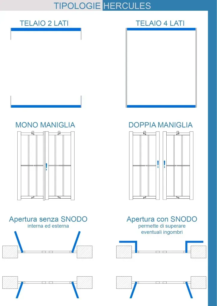 HERCULES è realizzabile nella versione HERCULES 2 e HERCULES 4, a MONO e a DOPPIA maniglia.